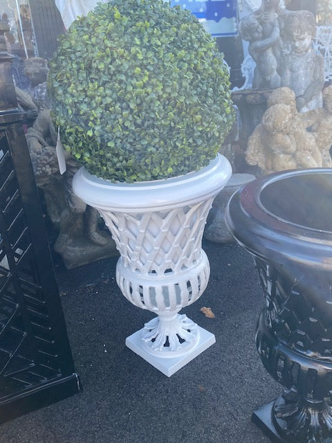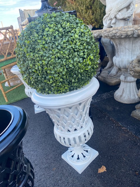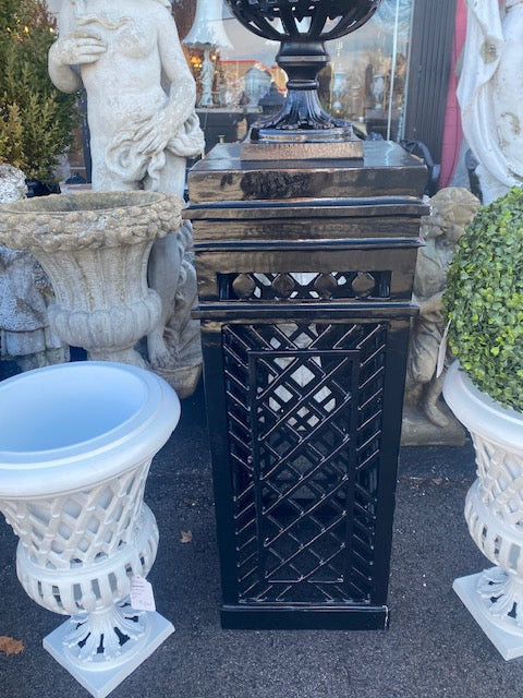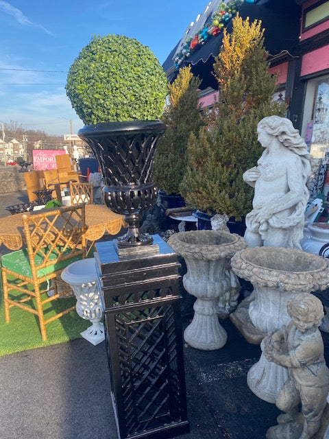 Stunning! Fretwork Heavy High Quality Cast Aluminum Urn & Pedestal Includes Metal Liner in all the Urns , Pedestal is 34 1/2" x13", Urn is 21" x 14" Available in Black & White
